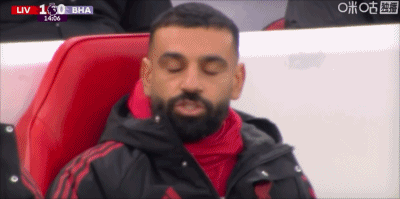 第15分鐘,利物浦一球領(lǐng)先,鏡頭多次找到替補(bǔ)席的薩拉赫